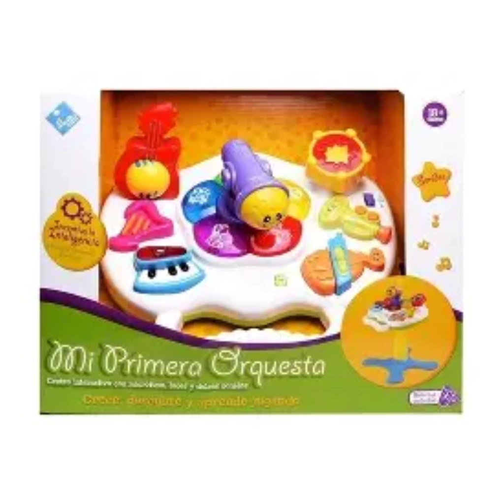 Interactua con la mesa de actividades musicales para descubrir diferentes sonidos de instrumentos y animales.