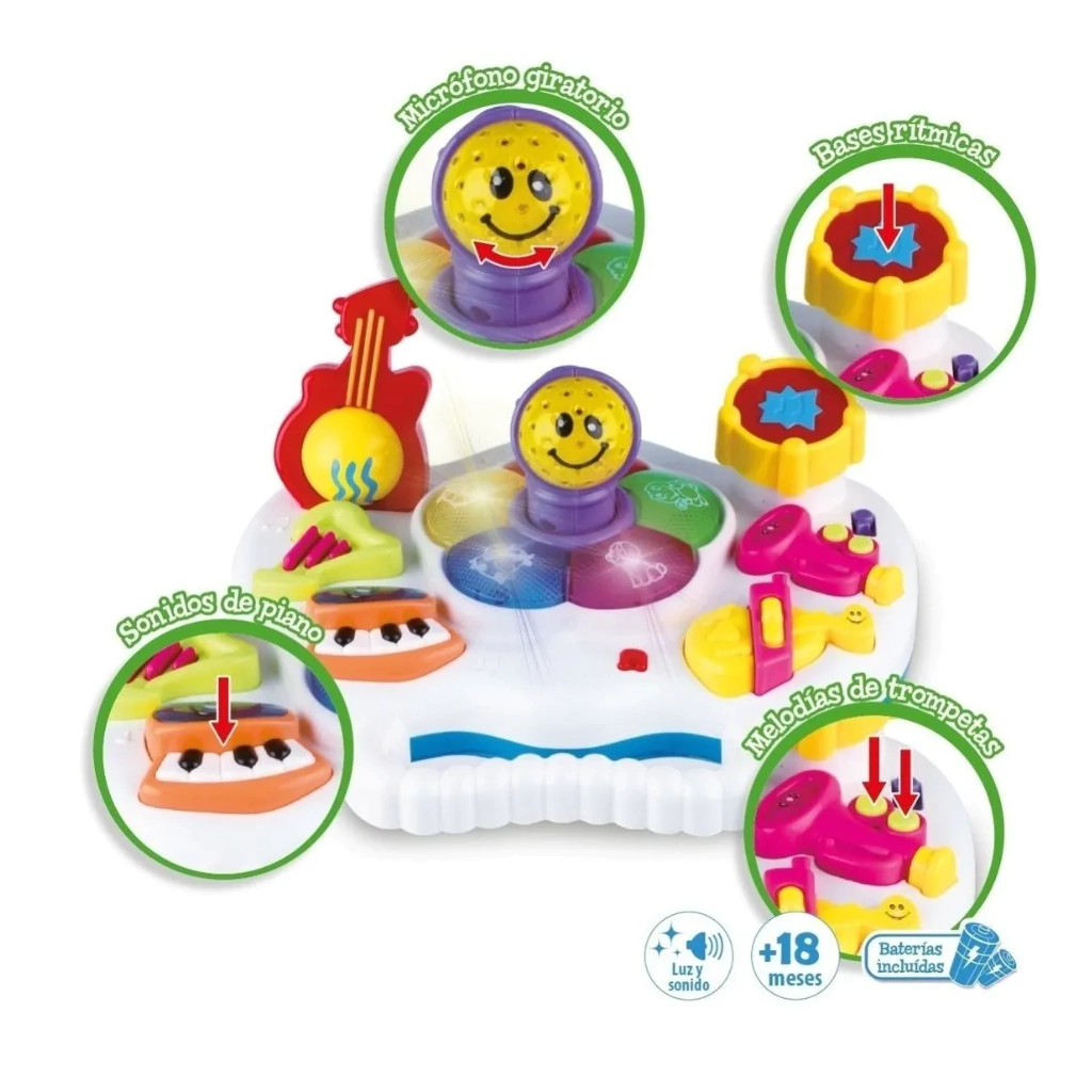 Centro interactivo con microfono, luces y dulces sonidos