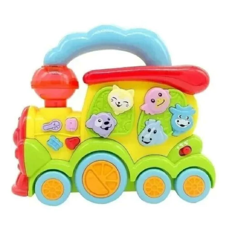 Con la simulacion del sonido del silbato del tren, la campana del tren, el sonido de los animales y las luces intermitentes, logra atraer la atencion de los bebes.